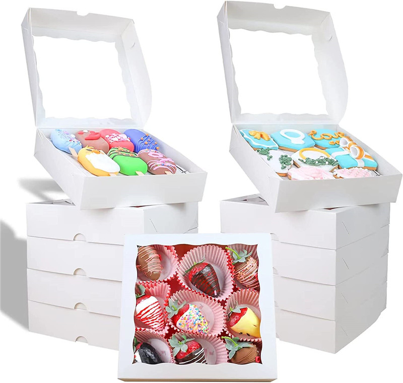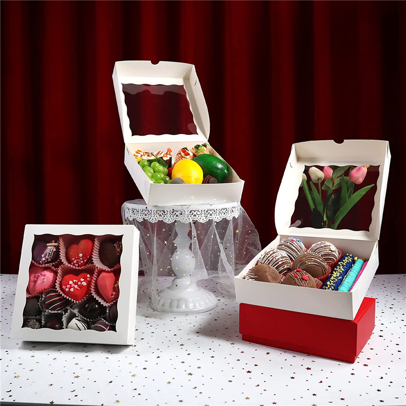 Home >  Product >RomanticBaking 50pcs 8x8x2 Inches Bakery Boxes with Window Cookies Boxes Chocolate Covered Strawberries Boxes Pretzel Boxes Cakesicle Browines Boxes