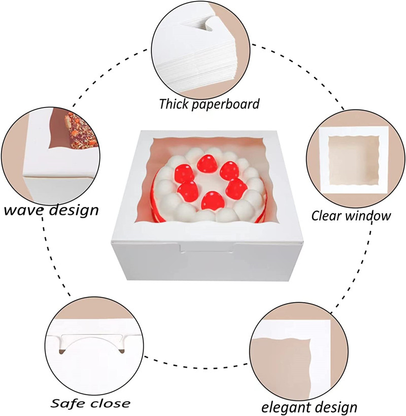 【Window】:Bakery boxes with clear window,perfect for showing off your delicious food,such as cookies strawberries it looks more pretty and elegant